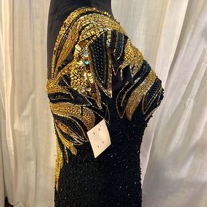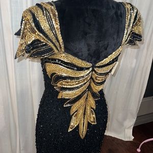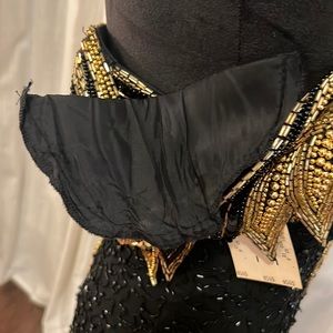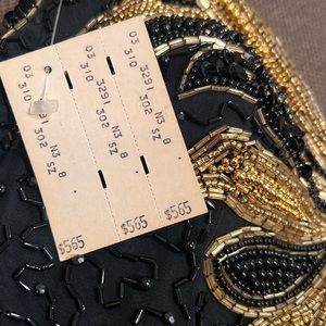 BLACK TIE black & gold beaded formal gown vintage womens dress zipper back NWT 8