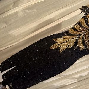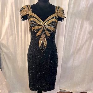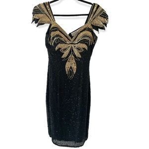 Black Tie By He-Ro Industries Silk Beaded Black & Gold Dress | Size 8