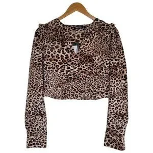 Listing for one Nasty Gal Leopard Ruffle Collar Crop Top // MSRP $54