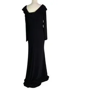 MAC DUGGAL IEENA Drop Shoulder Long Sleeve Column Formal Gown Black Size 14 NWT