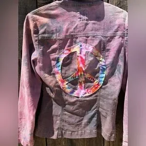 ND Division Purple Peace Tie Dye Denim Bohemian Hippie Jean Jacket. Size small. Y2K. Please ask all questions prior to purchasing so there is no confusion! Make me an offer😊 inv 1225