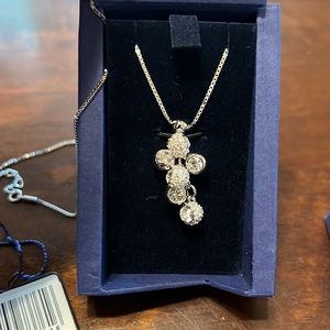 Brand new in box! Swarovski Flirt Pendant necklace. Features delicate clear crystal pavé and cut balls that form of a cluster pendant. This necklace is two sided so you get two in one - both sides feature the pave balls while one side has the faceted crystals facing the front and the other has the silver side of the balls facing forward. Adjustable length.