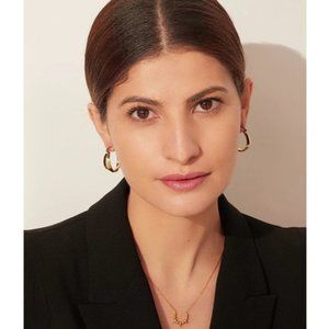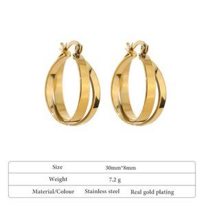 NEW 18K Gold Plated Double Cross Interlocking Round Hoop Earrings