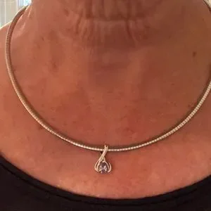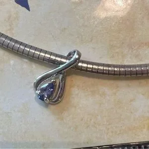 Safi Kilima Pure Mountain, Pure tanzanite necklace on silver chain. No marks for sterling noted on it. Purchased on Antigua at Tanzanite International jewelers.