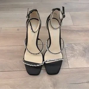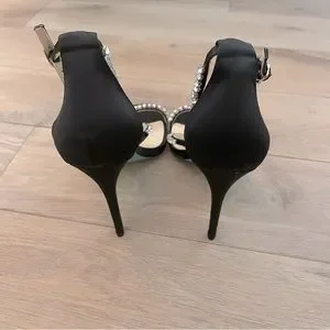 NWOB Blue by Betsey Johnson Elisa Black Satin Rhinestone Strap Heels Size 7