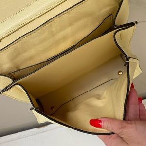 Mini version of the timeless top handle bag. With an exciting mélange of classic and modern elements this compact top handle bag has the characteristics of its older sisters, and an extra sprinkle of fashion. The soft natural grain leather, the internal compartments, the rigid handle and the shoulder strap define a contemporary and super cool must-have.