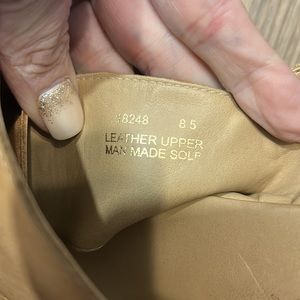 These shoes have an adjustable buckle that's in silver these shoes have never been worn there are very soft supple leather and only worn in the house been sitting in the back of my closet as I need a different size