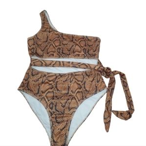 Snakeskin Print One Shoulder One Piece Swimsuit - Sz 1xl