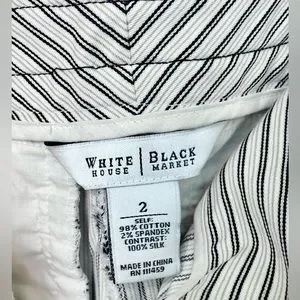 Like NEW White House Black Market PinStripe Sailor Pants in a Size 2. Cute Polka Dotted waistband Colors: Black, White, & Beige. Materials: 98% Cotton & 2% Spandex. Contrast: 100% Silk. EXCELLENT CONDITION!