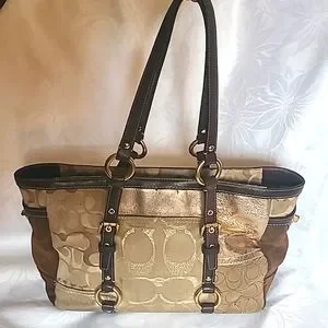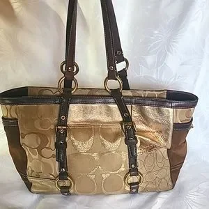 Coach Patchwork Patent Suede Signature C Jacquard Shopper Tote # F06Q-10388