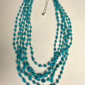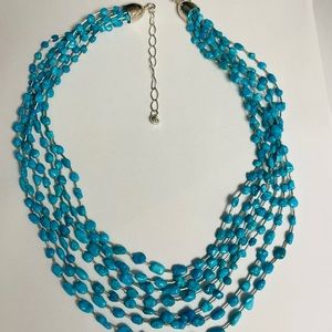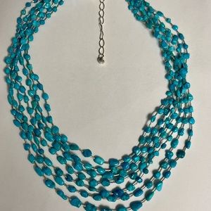 Beautiful Jay King DTR Liquid Sterling Silver Seven Strand Blue Turquoise Bead Nugget Necklace. Cascading necklace from 16 inches shorter strand to 18 inches longest plus 3 inches extender. NWOT