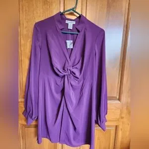 NWT Jessica London Purple Gather Blouse. Size 16W. Side Zip for flattering look