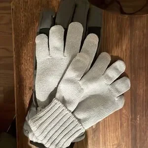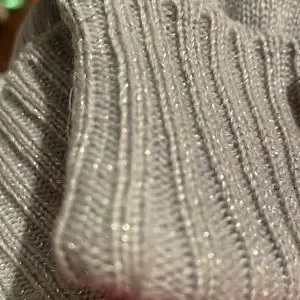 Polyester, spandex, mixed fabric ladies or girls’ gloves Style and Co brand. Sparkles like silver glitter on silver/gray.