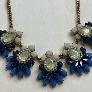 Designer J. Crew Gemstone Cluster Statement Necklace Teardrop Crystals Blue Beige Gold tone ✨✨ Pre-loved 💕 Great condition