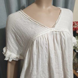 DECJUBA AU-S White Short Sleeved Blouse V-Neck Relaxed Fit Designed in AU NWOT