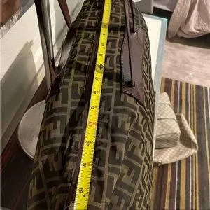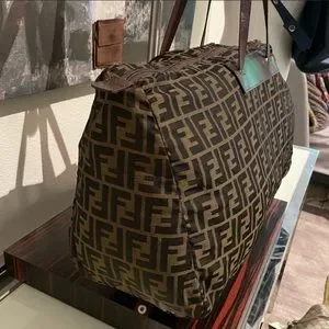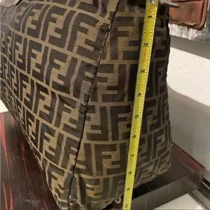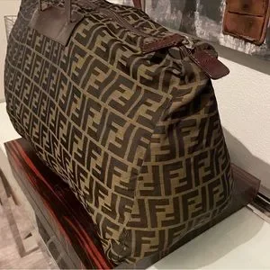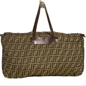 FENDI Large Zucca Canvas Duffle Weekender Tote Bag Black Brown