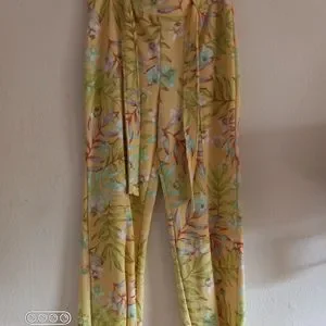 Belted Floral Flow Leg Yellow Pants