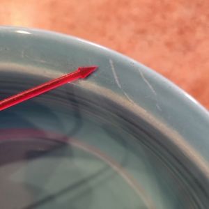 Color of bowl is turquoise - difference in pictures is indoor vs outdoor.