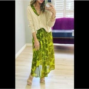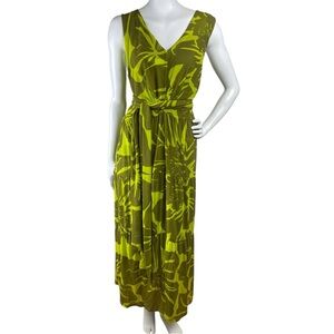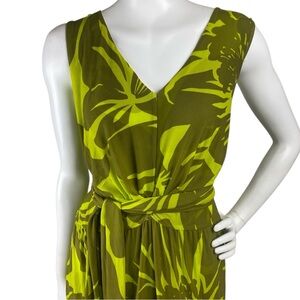 CAbi 5953 Tie Front Dress V-Neck Sleeveless Green Tropical Floral Boho - Women’s Size Large