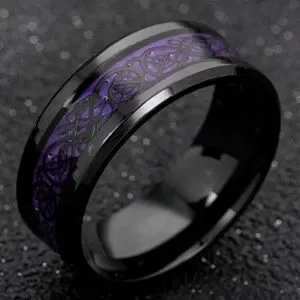 NWT - 8MM Retro Titanium/Stainless Steel Alloy Dragon Patterned Ring (Purple/Bk)