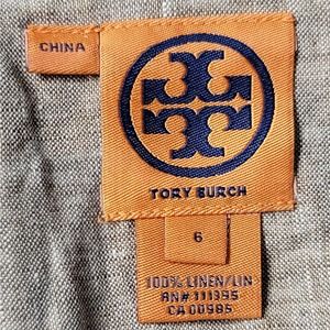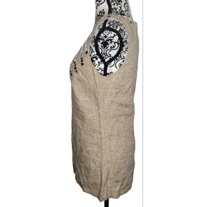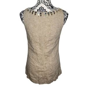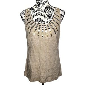 Tory Burch 100% Linen Size 6 Tan Embellished Sleeveless Blouse Top