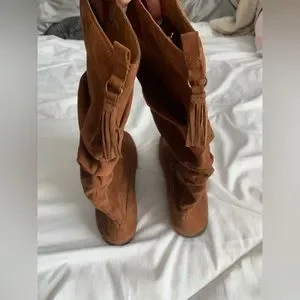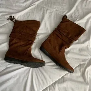 Brown Mid Calf Suede Boots