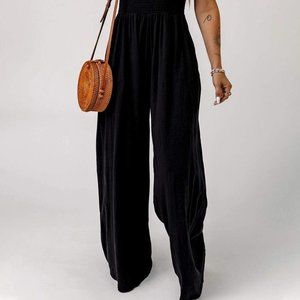 Black Casual Womens Solid Slant Pocket Cami Wide Leg Jumpsuit