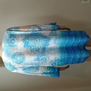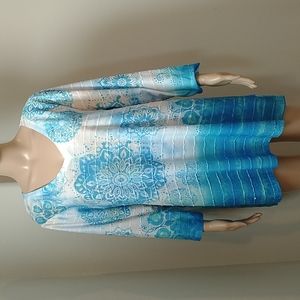 Time And Tru Blue/White Floral Mandela Pattern V Neck Long Sleeve Flowy Shirt
