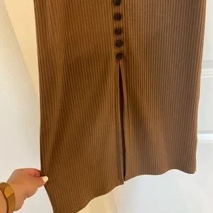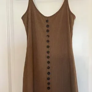Light brown/taupe tank dress with button details down the front and a small front slit. Great for summer and into fall.