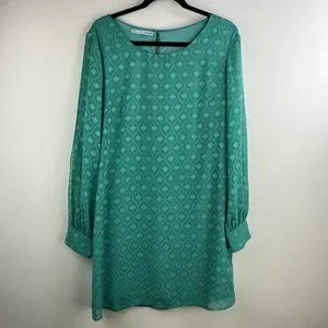 Maurices Womens Sz Large Green Diamond Textured Slit Long Sleeve Knee Length