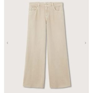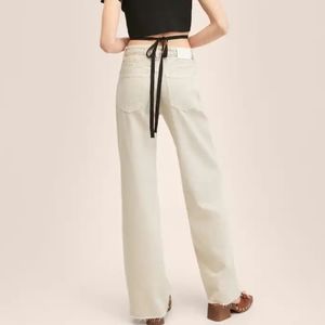 Denim style cotton fabric, Recycled cotton-blend fabric, Wide-leg design, Long design, Medium waist, Frayed hem, Five pockets, Loops, Zip and one button fastening, Fits bigger to size, Even Suitable for size 4