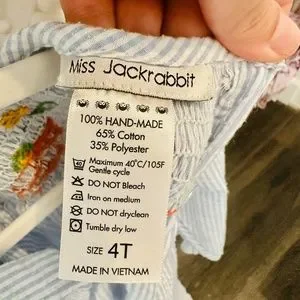 Extremely comfortable and light weight. It is a light seersucker-like material. Size 4. But we wore for 3 fall seasons...from ages 3 to 5 :) 2 very light stains. Pictured.