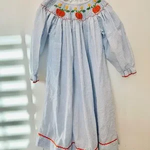 Fall Thanksgiving Pumpkin dress with smocking size 4