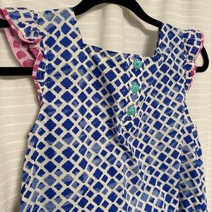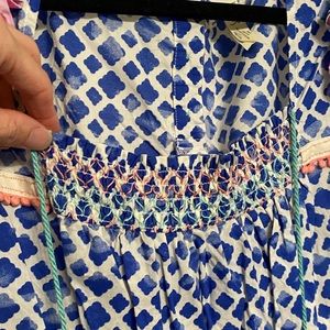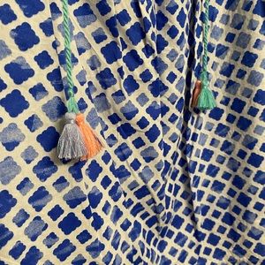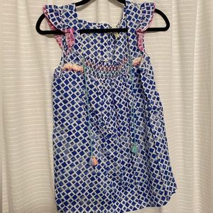 EUC Matilda Jane Sleeveless Blouse, Size Medium. Cute fabric, smocking at neckline, flutter shoulders, and tassels. So cute!