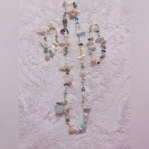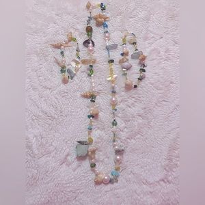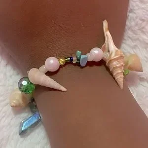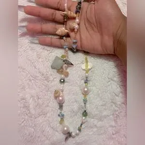 Beautiful combination of blue and green crystals, seashells, and pearls!!!