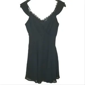 Lulu's Black Dress Size Small color black faux wrap front sheer and fully lined crochet detail on topcross over front adjustable straps 100% polyester excellent preowned condition pit to pit 19" length 36" (New1644)😊