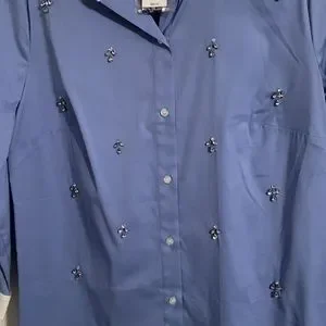 relaxed button down, point collar perfect shirt. 3/4 sleeves with button cuffs