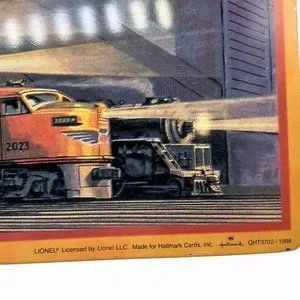 This Hallmark Replica Lionel Tin Sign is the perfect addition to any train enthusiast’s collection. Featuring a 1952 catalog cover graphic from 1998, this blue and gold tin sign will surely bring a nostalgic touch to any room. The perfect size to hang on any wall, this tin sign is a must-have for any train lover.