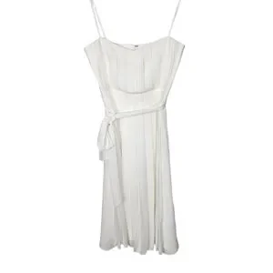 L'agence Short White Mini Dress Belted Pleated Excellent Pre-owned Condition 6.