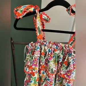 can be worn as a skirt or a dress by tucking in the straps at the waist