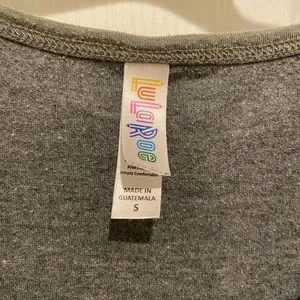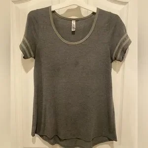LuLa Roe Classic Tee. Grey with olive stripes. Size small but fits like a medium. Freshly laundered. Smoke free home.