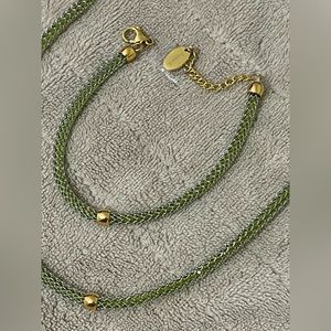 Beautiful silver jewelry with gold accent beads. Gold links on end. Necklace is 20inches and bracelet is 10inches. “August” is engraved on ends