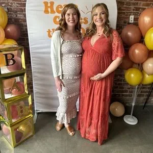Pink Blush maternity dress (but definitely could be worn non maternity) that I absolutely adored! I mean this in the best way possible - it felt like a Lizzie McGuire moment! Midi- I’m 5’6” and it hit mid calf. Great fit during the second trimester for me!