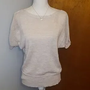 Blush pink/beige w/ gold shimmer. shoes sleeve, sweater-like material.
