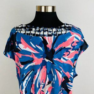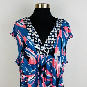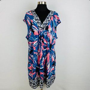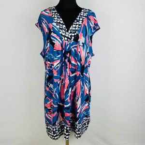 Alfani Womens Plus 2X Blue Salmon Pink Colorful Abstract Print Knee Length Dress