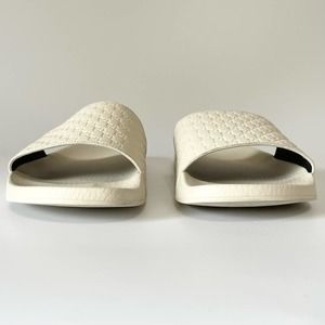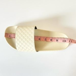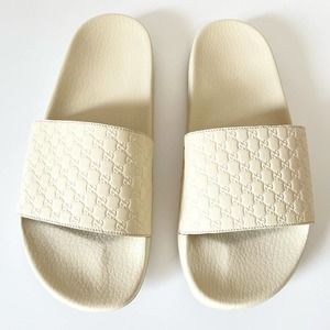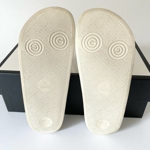 Gucci Leather Rubber Slide Sandal White Micro GG Monogram US Women 10 Men 8.5