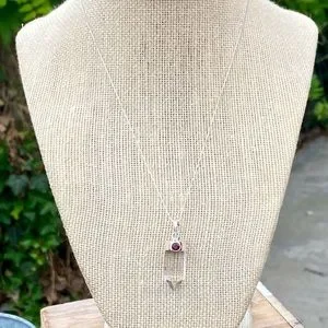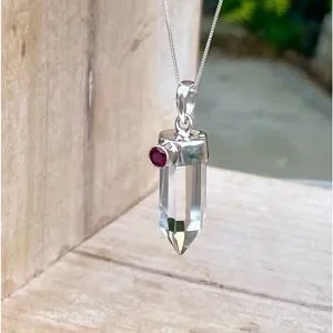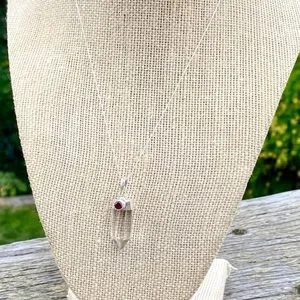 White quartz, genuine garnet and 925 sterling silver point pendant necklace