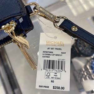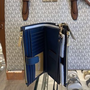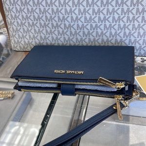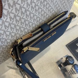 MICHAEL KORS LARGE DOUBLE ZIP WRISTLET WALLET PHONE CASE Navy NWT