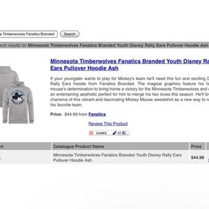 NEW Disney Fanatics Baseball Minnesota Timberwolves Rally Ears Sweater - Pullover Hooded Sweatshirt w/ Drawstring Hood & Mickey Character Graphic