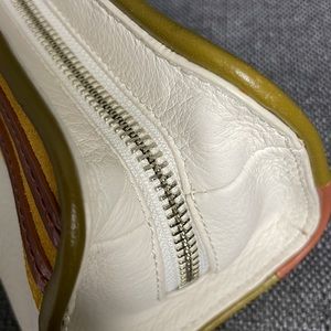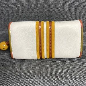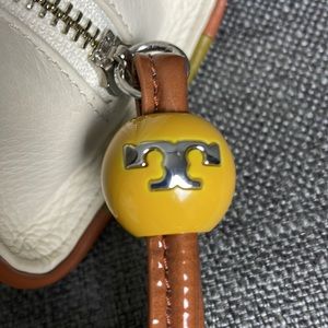 Tory Burch Contrast T Wristlet Off-White Gold and Brown